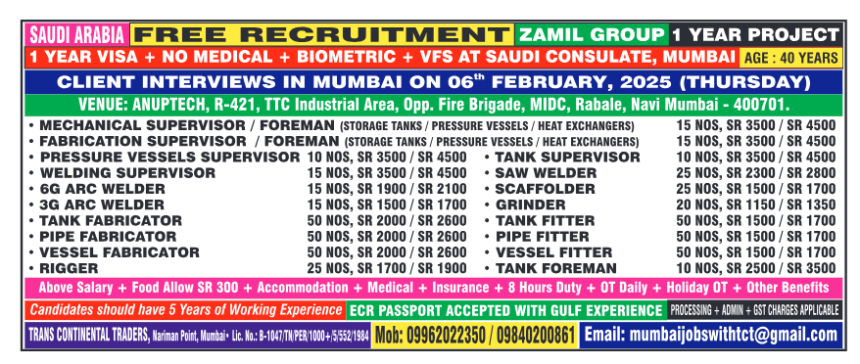 Looking for a rewarding career in Saudi Arabia? Zamil Group, a leading company, is offering free recruitment for a 1-year project. This is a fantastic opportunity to work on industrial projects with attractive salaries and benefits.