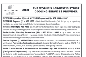 Empower Energy Solutions, the world’s largest district cooling services provider based in Dubai, is hiring skilled professionals for multiple positions. If you are looking for a rewarding career in a reputed organization, this is your chance.